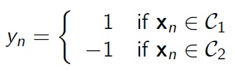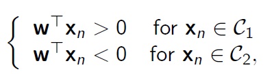 \(y_{n} = w^T x\) 일 때, Perceptron이 아래와 같이 분류할 수 있다고 가정하자.
